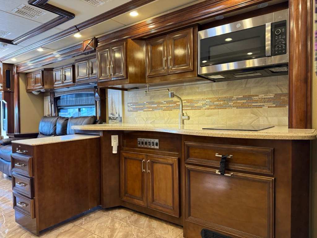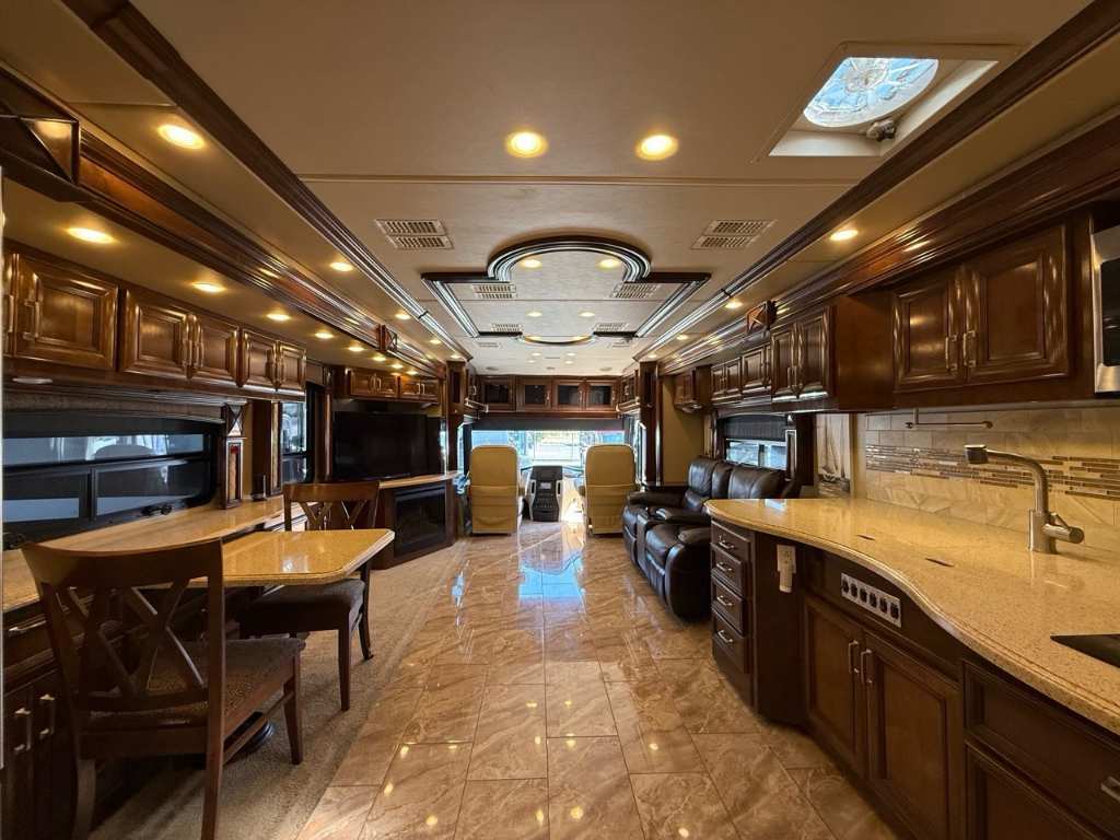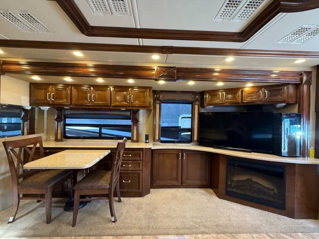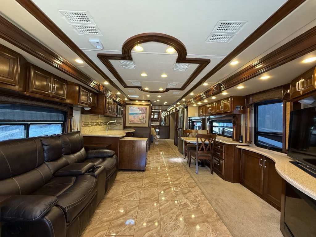 American Coach Revolution 42G 2014 Motorisé Classe A – American Coach 2014 - 42G – Le American Coach American Revolution 42G (2014) est un motorisé Class?A luxueux, conçu pour les familles ou voyageurs exigeants souhaitant un véritable confort résidentiel en déplacement. Spécifications mécaniques : • Moteur : Cummins I6 Diesel Pusher • Transmission : Allison à 6 vitesses automatique • Puissance : 450 hp à 2 100 RPM • Châssis : Freightliner Liberty • Type de carburant : Diesel Dimensions et capacités : • Longueur : 42.96 pieds • Réservoir d’eau douce : 100 gal • Réservoirs d’eaux usées : 100 gal • Couchages : Jusqu’à 4 personnes 5 caractéristiques principales : • Ses trois extensions créent un vaste espace de vie intérieur une fois stationné. • Il offre un grand lit king et un canapé convertible pour accueillir plusieurs personnes confortablement. • La cuisine et le salon sont élégants, avec des finitions haut de gamme et des sièges en cuir. • Il comprend deux salles de bain complètes, dont une à l’arrière, pour plus de commodité. • Les équipements incluent téléviseurs, laveuse/sécheuse, climatisation, et systèmes audio intégrés. Ce motorisé combine espace, luxe et équipements complets, idéal pour les longs séjours ou les voyages haut de gamm *** Prendre note que les photos et les options décrites peuvent différées *** Toute l'équipe de Centre du VR est fière de vous présenter le plus vaste inventaire de véhicules récréatifs neufs et d'occasions à vendre au Québec. Vous y trouverez notamment les marques Columbus, Rockwood, Kodiak, Coleman, Cruiser RV, Flagstaff, E-Pro, Springdale, Sunset Trail, Cougar, Chaparral, Bontrager Outdoors, motorisés Axis,Hurricane, Outlaw, Coachmen Cross Trail, Prism, Echelon,Fleetwood, Four winds, Beyon, Nova, Patriot et Embassy Dolphin. Remorques N&N, Apogée et Armorteck sont aussi disponibles. En inventaire pour vous, la série de génératrices Ducar. Vous avez un coup de coeur ? Envoyez-nous une demande d'information,financement sur place. N'oubliez pas également que rien ne vaut une visite du modèle qui vous intéresse pour vous aider à prendre une décision éclairée. Passez donc nous voir afin de jeter un coup d'oeil plus détaillé à nos caravanes et caravanes à sellettes neuves.