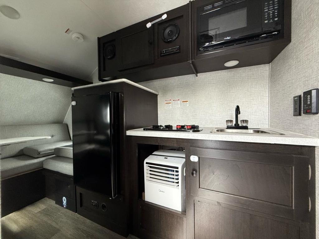 Braxton Creek Bushwhacker 17BH 2024 (bullet points) Compact et léger : 18 ft de long, 2300 lb à vide, remorque aisée avec véhicule léger. Couchages pour 4 : banquettes/bunks convertibles. Cuisine complète : cuisinière, évier, micro-ondes (option), frigo 12 V. Salle de bain intégrée : douche + toilette (wet bath). Confort amélioré : chauffage, climatisation, eau chaude à la demande, éclairage LED, TV/Wi-Fi, prises USB. Construction solide et équipement tout-terrain : roue de secours, pneus robustes, essieu renforcé. *** Prendre note que les photos et les options décrites peuvent différées *** Toute l'équipe de Centre du VR est fière de vous présenter le plus vaste inventaire de véhicules récréatifs neufs et d'occasions à vendre au Québec. Vous y trouverez notamment les marques Columbus, Rockwood, Kodiak, Coleman, Cruiser RV, Flagstaff, E-Pro, Springdale, Sunset Trail, Cougar, Chaparral, Bontrager Outdoors, motorisés Axis,Hurricane, Outlaw, Coachmen Cross Trail, Prism, Echelon,Fleetwood, Four winds, Beyon, Nova, Patriot et Embassy Dolphin. Remorques N&N, Apogée et Armorteck sont aussi disponibles. En inventaire pour vous, la série de génératrices Ducar. Vous avez un coup de coeur ? Envoyez-nous une demande d'information,financement sur place. N'oubliez pas également que rien ne vaut une visite du modèle qui vous intéresse pour vous aider à prendre une décision éclairée. Passez donc nous voir afin de jeter un coup d'oeil plus détaillé à nos caravanes et caravanes à sellettes neuves.