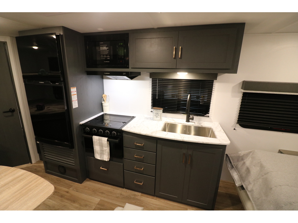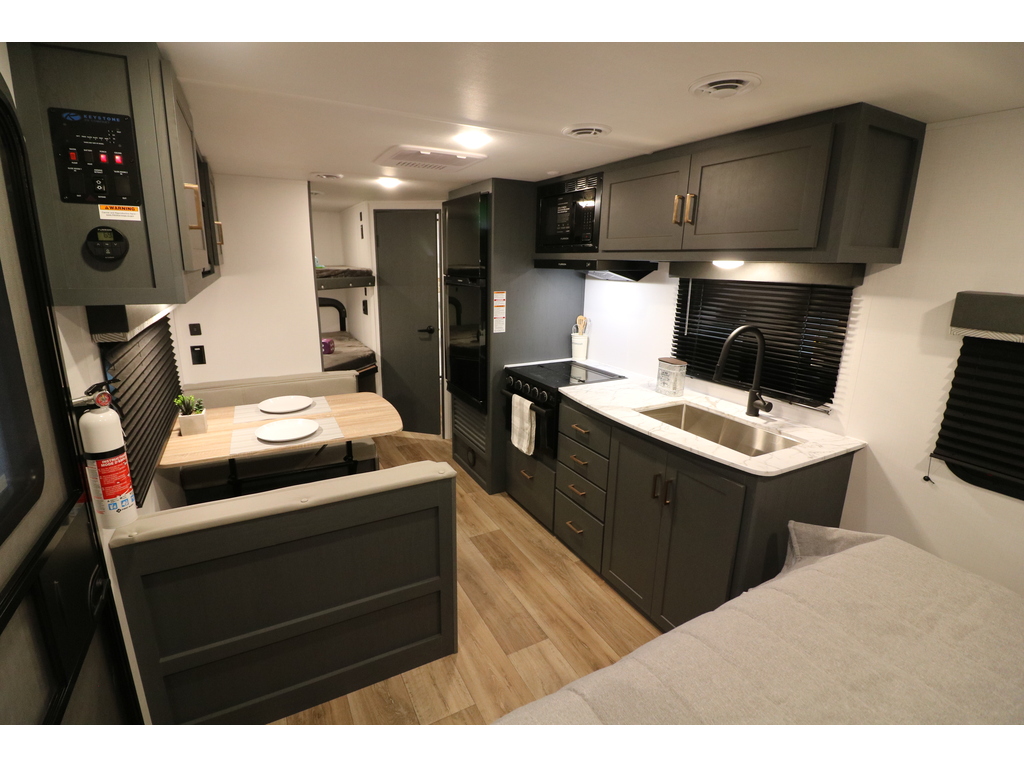 À VENIR !! SUPERBE ROULOTTE FAMILIALE !!!! Bullet 2200BH 2022. Roulotte parfaite pour la famille de structure en aluminium avec revêtement en fibre de verre. Elle a un poids de seulement 4700 lbs. C'est une superbe roulotte avec des lits superposés double pour les enfants. Il y a une belle banquette en cuir avec une grande fenêtre devant et téléviseur 32 pouces inclus au dessus de la banquette. Aussi l'espace cuisine est très fonctionnelle avec un grand évier profond, un micro-onde à convection, des ronds de poêle avec dessus vitré et un grand réfrigérateur avec congélateur à part. Vous serez heureux d'avoir un lit murphy qui mettra à votre disposition un lit queen sinon en une fraction de seconde un superbe divan en cuir très pratique pour les jours de pluie. Cette roulotte dispose de beaucoup de rangement. Elle a une grande salle de bain avec douche et belle vanité. Cette roulotte est parfaite pour passer du bon temps à l'extérieur grâce à l'auvent électrique et à la petite cuisine extérieure. De plus elle offre de grands espaces de rangement avec ses coffres et sa porte cargo arrière Financement facile sur place. **Photos à titre indicatif**