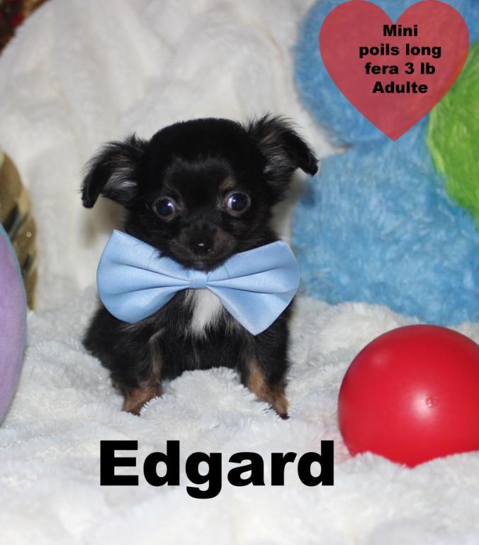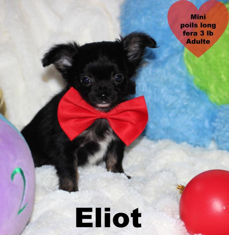 Chihuahua Mâle mini Toy poils court et poils long feront 3 lb adulte .Contrat de Garantie complet 1an . Assurance accident & santé gratuite.Papa pèse 2lb 1/2 ,Maman enrg CKC. Délicat et petits , aiment bien explorer partout dans la maison,. Adore se faire prendre et aime dormir dans nos bras . Très calme et affectueux. bien élevé , déjà habituer à se promener dans une petite sacoche. Petite boule d'affection qui saura vous charmer Superbe conformité (pattes courte nez court, tête de pomme). Adorable amour sur 4 pattes, aime bien jouer avec les autres chiots. Très autonome et ne sens laisse pas imposer par les plus grand. Adore les câlins . Propre sur pipi pad et journaux. Garantie 1ans sur contrat écrit, assurance santé gratuite, examen médicale rigoureux, Vacciné, vermifugé, micropucé, antiparasite. Vaccin de surplus bordatella compris. Nos chiots sont de qualité (aucune consanguinité). Éleveur certifié avec permis du MAPAQ. En tant qu’éleveur soucieux d’offrir des chiots de qualité, il est primordial pour nous d’avoir des parents qui répondent aux standards de la race afin de produire des chihuahuas en santé, sans défaut génétique et avec un bon tempérament. Nous choisissons le mariage parfait femelle et mâle pour l’accouplement afin de vous offrir des chiots exceptionnels et bien typé. Nous élevons avec amour et passion de magnifiques chihuahuas poils longs et courts. Il règne dans notre élevage un atmosphère d'amour et de paix. Les soins au nouveaux nés demande notre disponibilité 24h/24. Il nous faut faire preuve d'un grand dévouement et avoir à cœur la passion de cette petite race exceptionnelle. Nos chiots ne nous quittent pas avant d’avoir 3 mois car ils doivent avoir appris a bien socialisée, cette période est requise pour leurs équilibre et développement Nos chiots sont tous entrainés à la propreté sur pipi pad et journaux. Il nous quitte avec carnet de vaccination, une trousse de départ complète.Les Amis Chihuahua de Mimi 514-241-9196