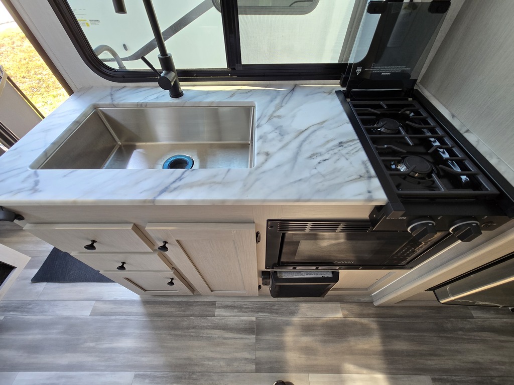 Roulotte familiale. Lit Murphy et puit de lumière, 400 WATTS PANNEAUX SOLAIRES, chauffe eau instantané, lits superposés doubles. Four micro-ondes à convection. Poids de 4,198 lbs. Frigo 10.7 pieds cube.