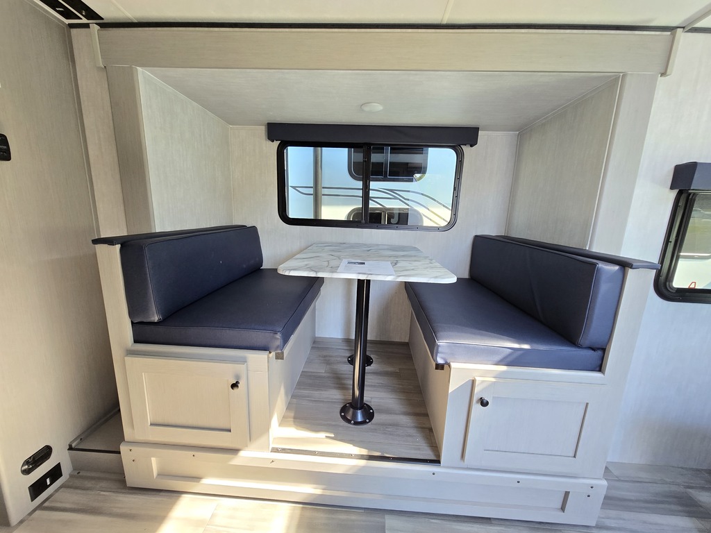 Options : Jantes aluminium, Convertisseur de courant continu, Réservoir de propane, Climatiseur au plafond, Roue de secours, Douche extérieure, Lucarne, Douche, Toilette, Lit queen-size, Lits superposés, Canapé-lit, Prise électrique, Prise cable, Four à convection, Cuisinière, Auvent, Chauffe-eau à allumage direct