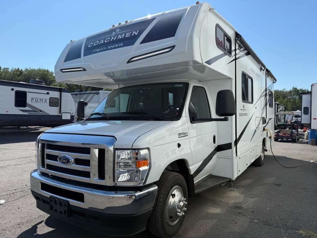 Coachmen Freelander 26DS essence 2026Motorisé Classe C Freelander 26DS 2026 – Essence Mesure 27’42'' Jack Hydrolique Autonivellant Construit sur le robuste châssis Ford E-450, ce motorisé est propulsé par un puissant moteur V8 7,3 L développant 325 HP et 450 LB-PI de couple, jumelé à une transmission automatique TorqShift à surmultiplication. Avec une capacité de remorquage de 7 500 lb, vous aurez la liberté d’apporter tout l’équipement nécessaire à vos aventures. Caractéristiques principales Réservoir d’eau potable : 50 GAL Réservoir d’eaux grises : 62 GAL Système de rinçage du réservoir noir Réservoirs chauffés Sofa de type théâtre, une dinette en U et un téléviseur intelligent 12 V de 40 po au salon. La couchette en capucine est équipée d’un filet de sécurité et d’une échelle, tandis que les sièges de cockpit en similicuir offrent style et durabilité. La cuisine est pensée pour la commodité, incluant un réfrigérateur 12 V de 10 pi³, un four à convection, un évier inoxydable avec robinet à douchette et, en option, des comptoirs en surface solide. Chauffe-eau sans réservoir, et des ventilateurs de cabine et de chambre avec couvercle Maxxair. Caméras de recul et de vue latérale avec moniteur Radio de tableau de bord CarPlay / Android Auto Amplificateur 5G/Wi-Fi Centre de divertissement extérieur avec téléviseur et barre de son Bluetooth Auvent électrique de 18 pi avec bande LED Compartiment arrière roto-moulé Douche et table extérieures Raccord rapide LP Système de stabilisation et vérins hydrauliques (en option) Panneau solaire de 200 W avec contrôleur 30 A et batteries AGM doubles Fauteuils inclinables électriques doubles Sièges pivotants conducteur/passager avec table et housse de pare-brise Téléviseur de chambre (24 po) Système de climatisation double (avant 15 000 BTU avec thermopompe + arrière 11 000 BTU) Démarrage automatique du générateur *** Prendre note que les photos et les options décrites peuvent différées *** Toute l'équipe de Centre du VR est fière de vous présenter le plus vaste inventaire de véhicules récréatifs neufs et d'occasions à vendre au Québec. Vous y trouverez notamment les marques Columbus, Rockwood, Impression, Kodiak, Coleman, Cruiser RV, Flagstaff, E-Pro, Springdale, Sunset Trail, Cougar, Chaparral, Bontrager Outdoors, motorisés Axis, Hurricane, Outlaw, Coachmen Cross Trail, Prism, Echelon, Fleetwood, Four winds, Compass, Beyond, Nova et Pixel. Remorques N&N, Apogée et Armorteck sont aussi disponibles. En inventaire pour vous, la série de génératrices Ducar. Vous avez un coup de coeur ? Envoyez-nous une demande d'information. Financement sur place. N'oubliez pas également que rien ne vaut une visite du modèle qui vous intéresse pour vous aider à prendre une décision éclairée. Passez donc nous voir afin de jeter un coup d'oeil plus détaillé à nos caravanes et caravanes à sellettes neuves.
