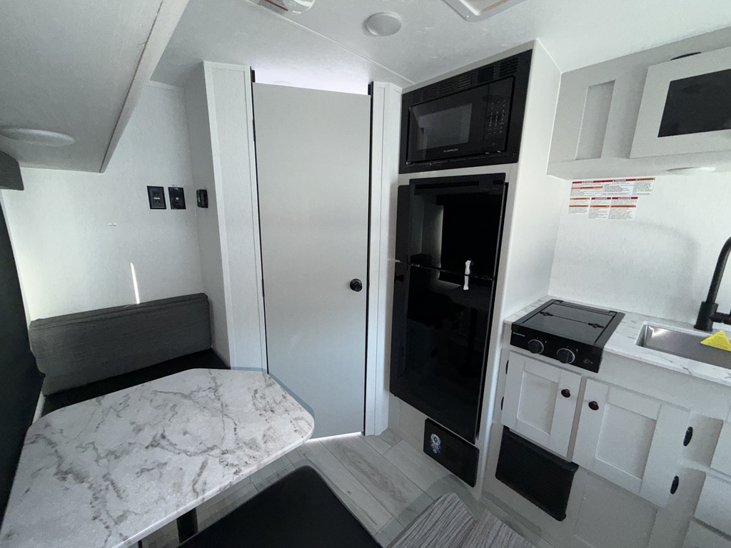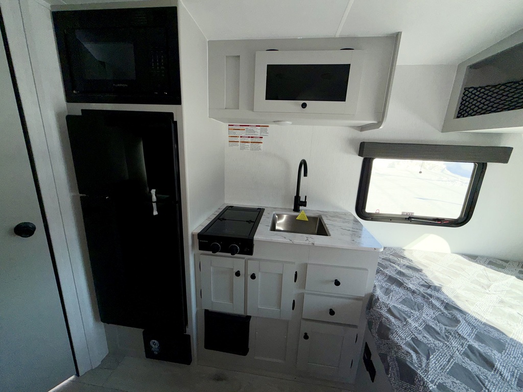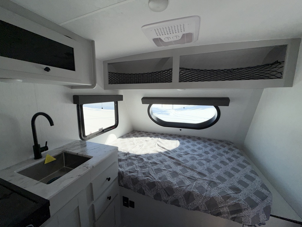 La Coachmen Remote 12.1R 2026 est une petite roulotte ultracompacte pleine hauteur (6'4) parfaite pour un couple, conçue pour le camping autonome et les aventures hors réseau. Facile à remorquer et simple à utiliser, elle s’adresse aux campeurs qui veulent voyager léger tout en conservant l’essentiel du confort. Ce qui diffère du modèle Remote 12.1R et 12R est la version dinette versus une version comptoir lunch selon votre préférence. Elle est construite avec des murs en Azdel, reconnus pour leur résistance à l’humidité et leur durabilité, et repose sur des pneus Goodyear offrant une bonne fiabilité sur la route. Le confort à bord est assuré par un chauffe-eau sur demande Fogatti, fournissant de l’eau chaude en continu, ainsi que deux panneaux solaires pour un total de 400 watts, idéal pour prolonger les séjours sans branchement. Pensée pour une utilisation en conditions plus fraîches, la Remote 12.1R est équipée de heat pads 12 V pour les réservoirs d’eau fraîche, grise et noire, aidant à prévenir le gel. Elle comprend également un haut-parleur Bluetooth intégré pour le divertissement et un système de surveillance de la pression des pneus TPMS, ajoutant un niveau de sécurité appréciable lors des déplacements. Une roulotte 2026 compacte à seulement 2629lbs, robuste et axée sur l’autonomie, parfaite pour les campeurs qui recherchent une Remote minimaliste, fiable et prête pour l’aventure, sans superflu.