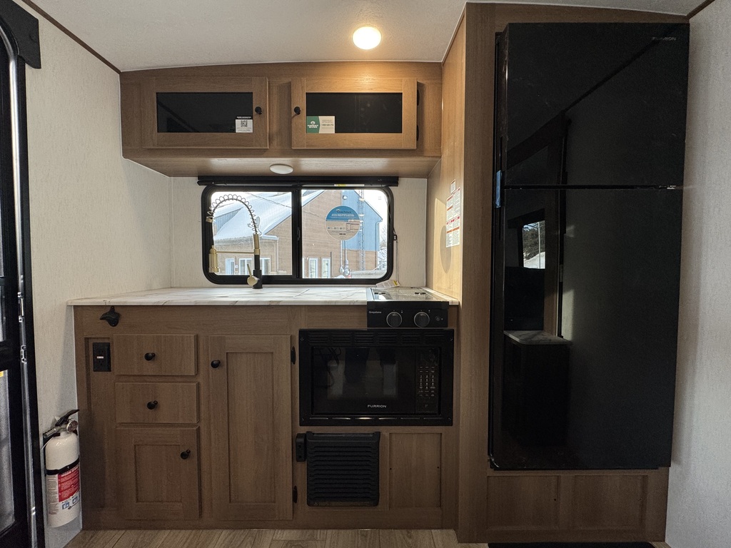 Effet WOW garanti ! Roulotte 2026 pour couple au design moderne et intelligent, avec lit Queen, comptoir lunch intérieur et comptoir extérieur pour profiter pleinement de chaque séjour. Équipement haut de gamme : réfrigérateur 12V 10 pi³, chauffe-eau instantané 48 000 BTU, douche extérieure chaude/froide, plaque 2 brûleurs encastrée, micro-ondes avec fonction air fryer et évier inox avec couvercle maximisant l’espace de travail. Idéale pour le camping autonome grâce au système solaire 400W (contrôleur 30A) et au réservoir d’eau fraîche de 52 gallons. Construction solide : structure complète en aluminium et murs Azdel laminés sous vide. Une roulotte moderne, autonome et prête à partir à l’aventure.