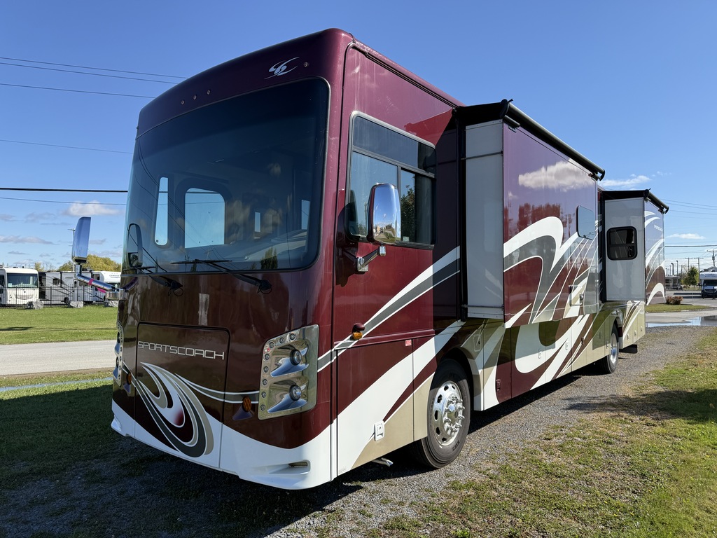 Options : Suspension pneumatique, Génératrice au diesel, Réservoir de propane, Climatiseur conduit central, Miroirs électriques, Régulateur de vitesse, Volant inclinable, Caméra Marche arrière, Cric hydraulique, Échelle, Attache-remorque, Douche, Toilette, Laveuse, Sécheuse, Lit arrière, Téléviseur, Micro-onde, Auvent, Chauffe-eau***Consignation / Payez une seule taxe !!*** Superbe motorisé classe A 2018 Coachmen Sportscoach 407FW avec moteur Cummins 6 cyl 360HP, 3 extensions, génératrice, bunk bed, lit king, plancher en céramique, plaque induction et encore plus... We also speak english Voir www.superieurvr.com pour plus de photos Un véhicule récréatif demeure la meilleure manière de voyager en toute sécurité en protégeant votre santé et celle des personnes qui vous sont chères! Financement disponible et échange accepté Appelez nous sans frais au 1-888-756-0481 Supérieur VR c’est plus de 15 ans d'expérience à votre service. Des techniciens formés, accrédités et expérimentés. C’est 15 baies de service: mécanique, habitation, esthétique, atelier de carrosserie complet avec chambre à peinture grand format (50 pieds). Centre de service autorisé pour les génératrices Onan Cummins, systèmes de chauffage Aqua Hot, Hydro hot, precision temps et Oasis. Nous vendons des motorisés usagés certifiés. Nous avons aussi des motorisés neufs de marque Coachmen Sportscoach, Encore, Mirada et Pursuit. Nous sommes aussi détaillant du manufacturier Gulfstream pour les marques Conquest et BT Cruiser. Sans oublier le manufacturier Holiday Rambler pour les marques Admiral, Eclipse, Invicta et Vacationer. De plus, nous avons un vaste choix de pièces sur place.Garantie : Motorisé en consignation...aucune garantie légale donné par le commerçant. Garantie supplémentaire disponible.