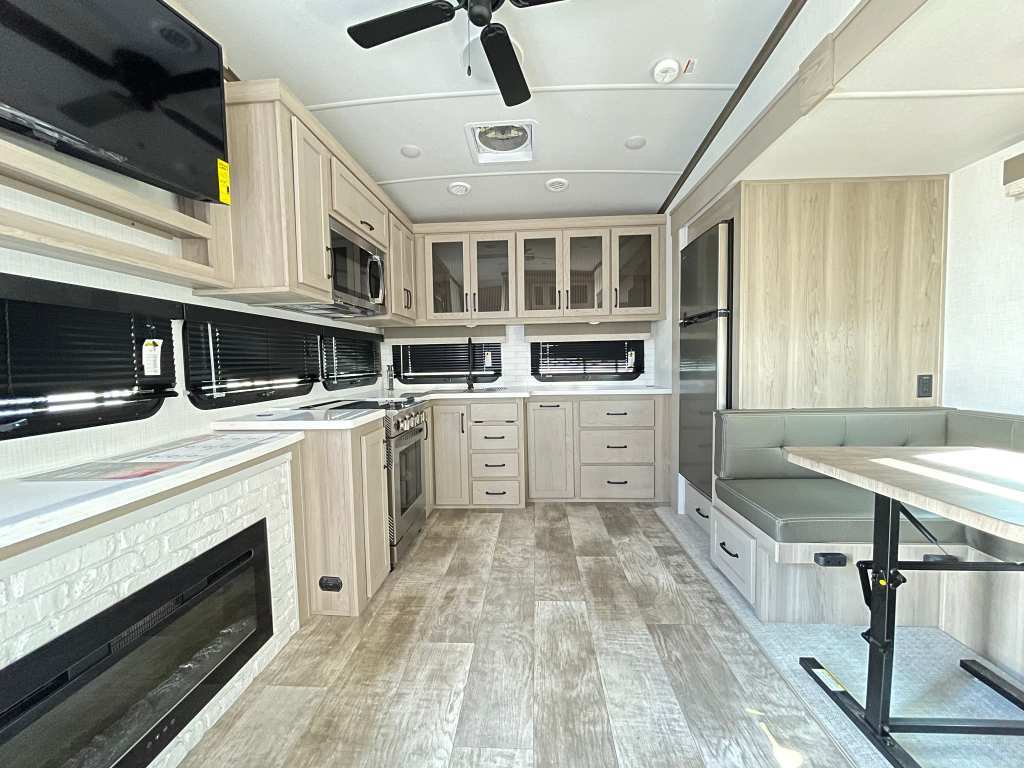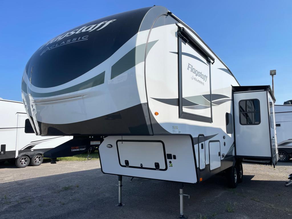FLAGSTAFF 301RK 2024 Longueur 30,67 pi (368 po) Largeur 8 pi (96 po) Hauteur 13,08 pi (157 po) Poids Poids sec 8 469 livres Capacité de charge utile 1 527 livres PNBV 9 996 livres Poids d'attelage 1 410 livres Réservoirs de rétention Nombre de réservoirs d'eau douce 1 Capacité totale du réservoir d'eau douce 54,0 gal. Nombre de réservoirs de rétention d'eaux grises 1 Capacité totale du réservoir d'eaux grises 80,0 gal. Nombre de réservoirs de rétention des eaux noires 1 Capacité totale du réservoir d'eaux noires 40,0 gal. Réservoir(s) de propane Nombre de réservoirs de propane 2 Capacité totale du réservoir de propane 14,2 gal. Capacité totale du réservoir de propane 60 livres. Longueur de l'auvent 20 pi (240 po) électrique. Configuration de la table de cuisine Dinette en U Emplacement de la cuisine Arrière. Peux coucher 6 personnes. Centre du VR : Votre expert en véhicules récréatifs au Québec Découvrez le plus vaste inventaire de VR neufs et d'occasion au meilleur prix. Que vous cherchiez une roulotte, une caravane à sellette (fifth wheel), une caravane-portée, un motorisé ou une remorque, notre équipe vous propose les plus grandes marques : Roulottes et Fifth Wheels : Rockwood, Flagstaff, Cougar, Springdale, Sunset Trail, Chaparral, Columbus, Impression, Kodiak, Coleman, E-Pro, Cruiser RV. Motorisés (Classe A, B, C) : Axis, Hurricane, Fleetwood, Four Winds, Coachmen Cross Trail, Prism, Echelon, Outlaw, Beyond, Nova. Remorques et Équipements : NN, Apogée, Armorteck et génératrices Ducar ou Cummins. Bien plus que de la vente : Un service complet Département de pièces et boutique : Un inventaire massif de pièces de remplacement et d'accessoires de camping pour améliorer votre confort. Service et réparation : Un centre de service spécialisé pour l'entretien et la réparation de vos unités, assuré par des techniciens experts. Financement : Profitez de nos solutions de financement avantageuses directement sur place. Un modèle vous intéresse ou vous avez besoin d'un entretien ? Contactez-nous pour une demande d'information ou passez nous voir en succursale pour une visite ! Note : Les photos et options peuvent différer de la réalité.