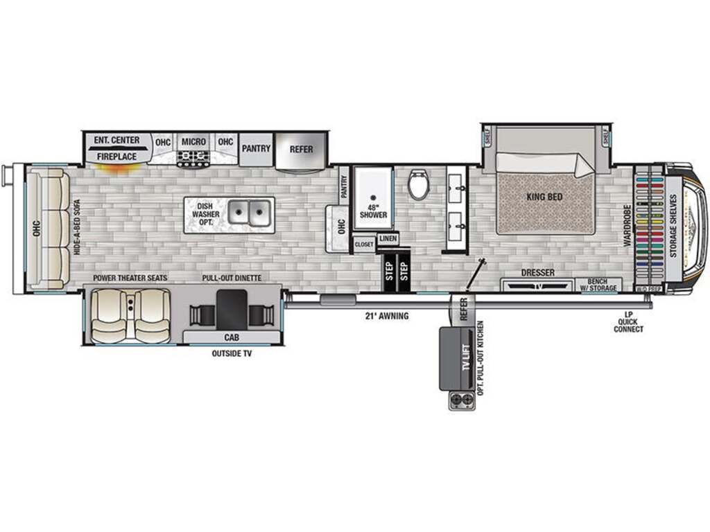 Forest River Cedar Creek 38EL 2021 Magnifique Fifth Wheel Cedar Creek Champagne 38EL 2021 Mesure 42'17 et pèse 14 429 lbs Grande chambre des maîtres avec lit king et grande penderie Salon avec canapé théâtre, sofa-lit, téléviseur et foyer électrique Cuisinière au propane avec fourneau, Réfrigérateur résidentiel Îlot avec double lavabo intégré Table avec chaises Salle de bain complète avec vanité disposant d'un grand lavabo double robinet et douche de 48'' Air climatisé *** Prendre note que les photos et les options décrites peuvent différées *** Toute l'équipe de Centre du VR est fière de vous présenter le plus vaste inventaire de véhicules récréatifs neufs et d'occasions à vendre au Québec. Vous y trouverez notamment les marques Columbus, Rockwood, Kodiak, Coleman, Cruiser RV, Flagstaff, E-Pro, Springdale, Sunset Trail, Cougar, Chaparral, Bontrager Outdoors, motorisés Axis,Hurricane, Outlaw, Coachmen Cross Trail, Prism, Echelon,Fleetwood, Four winds, Beyon, Nova, Patriot et Embassy Dolphin. Remorques N&N, Apogée et Armorteck sont aussi disponibles. En inventaire pour vous, la série de génératrices Ducar. Vous avez un coup de coeur ? Envoyez-nous une demande d'information,financement sur place. N'oubliez pas également que rien ne vaut une visite du modèle qui vous intéresse pour vous aider à prendre une décision éclairée. Passez donc nous voir afin de jeter un coup d'oeil plus détaillé à nos caravanes et caravanes à sellettes neuves.