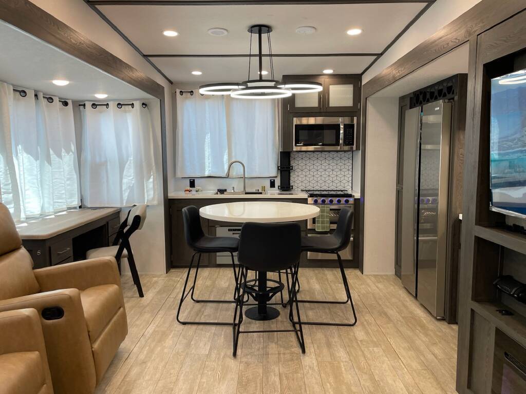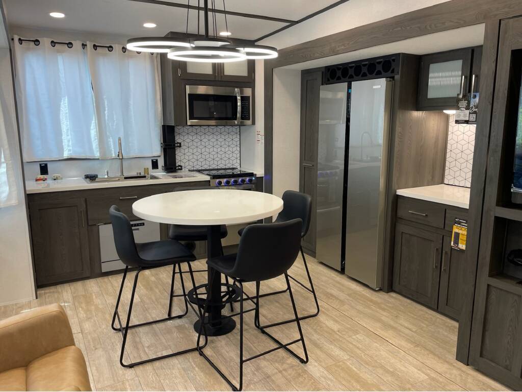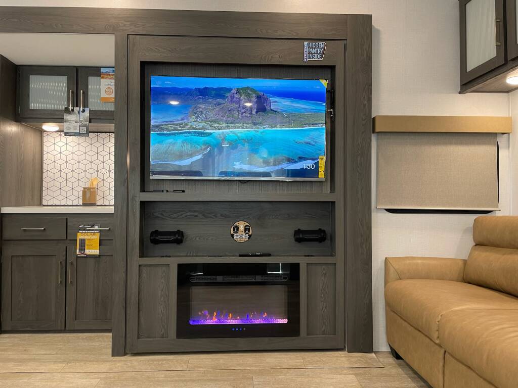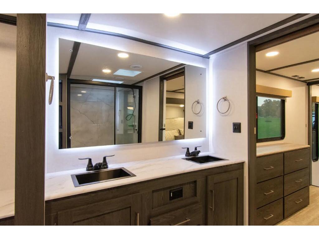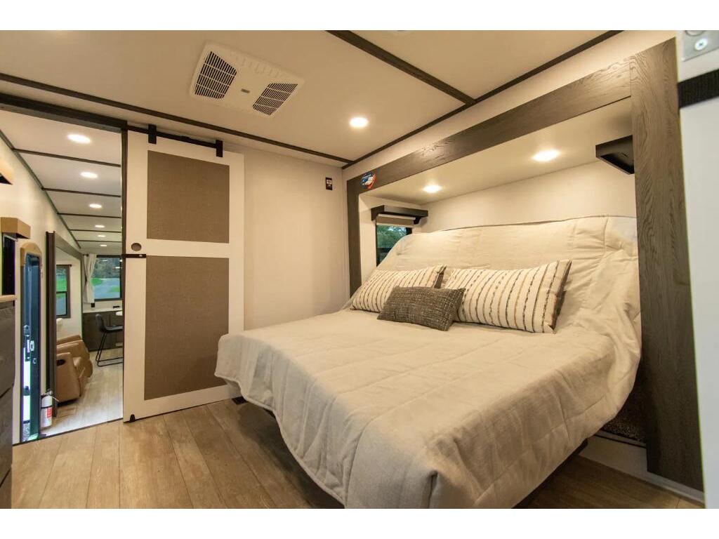Forest River Impression 360MYR 2026 Forest River Impression 360MYR 2026 : Spécifications Techniques Longueur Totale : 42 pi 11 po Largeur Extérieure : 8 pi Hauteur Extérieure : 13 pi 4 po Poids à Vide : 12 338 lb Capacité de Charge : 3 547 lb Capacité des Réservoirs : Eau fraîche : 57 gal Eaux grises : 90 gal Eaux noires : 60 gal Capacité de Couchage : 4 à 6 personnes Service Électrique : 50 AMP Luxe et Confort Résidentiel Élue Meilleur Nouveau Modèle 2025 par RV Pro , la Forest River Impression 360MYR est une caravane à sellette (fifth wheel) qui allie design moderne, confort résidentiel et fonctionnalités innovantes. Points Forts Disposition Spacieuse : Avec ses 3 extensions (slides), cette caravane offre un espace de vie généreux comprenant un salon central, une cuisine arrière et une chambre principale à l'avant. Cuisine Arrière Équipée : Dotée d'un réfrigérateur 12V de 16 pi³, d'un four, d'un micro-ondes avec hotte intégrée et d'un évier multifonctionnel avec robinet à pulvérisateur, planche à découper et accessoires intégrés. Salon Confortable : Comprend un canapé-lit triple, des fauteuils inclinables avec ports USB, une table haute avec quatre chaises et une cheminée électrique de 5 500 W. Chambre Principale : Équipée d'un lit king-size avec technologie Versa Tilt, d'une commode, de prises 110V et USB, et d'une préparation pour machine CPAP. Salle de Bain Luxueuse : Dispose d'une douche à l'italienne avec puits de lumière, de deux lavabos avec miroir rétroéclairé et d'un grand placard avec tringle en U pour les vêtements. Espace Buanderie Polyvalent : Inclut des préparations pour laveuse/sécheuse, un comptoir et un séchoir escamotable pour suspendre les vêtements. Confort en Toutes Saisons : Grâce à son système de chauffage de 35 000 BTU, son climatiseur de 15 000 BTU, ses réservoirs chauffés et son isolation renforcée, cette caravane est prête pour les quatre saisons. Autonomie Énergétique : Équipée d'un panneau solaire de 100W sur le toit, d'un contrôleur de charge de 30 AMP et d'une batterie, elle est prête pour des aventures hors réseau. *** Prendre note que les photos et les options décrites peuvent différées *** Toute l'équipe de Centre du VR est fière de vous présenter le plus vaste inventaire de véhicules récréatifs neufs et d'occasions à vendre au Québec. Vous y trouverez notamment les marques Columbus, Rockwood, Kodiak, Coleman, Cruiser RV, Flagstaff, E-Pro, Springdale, Sunset Trail, Cougar, Chaparral, Bontrager Outdoors, motorisés Axis,Hurricane, Outlaw, Coachmen Cross Trail, Prism, Echelon,Fleetwood, Four winds, Beyon, Nova, Patriot et Embassy Dolphin. Remorques N&N, Apogée et Armorteck sont aussi disponibles. En inventaire pour vous, la série de génératrices Ducar. Vous avez un coup de coeur ? Envoyez-nous une demande d'information,financement sur place. N'oubliez pas également que rien ne vaut une visite du modèle qui vous intéresse pour vous aider à prendre une décision éclairée. Passez donc nous voir afin de jeter un coup d'oeil plus détaillé à nos caravanes et caravanes à sellettes neuves.