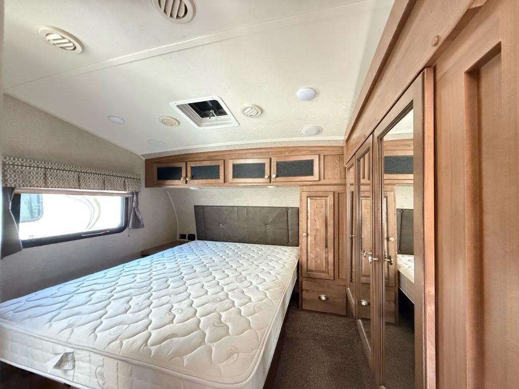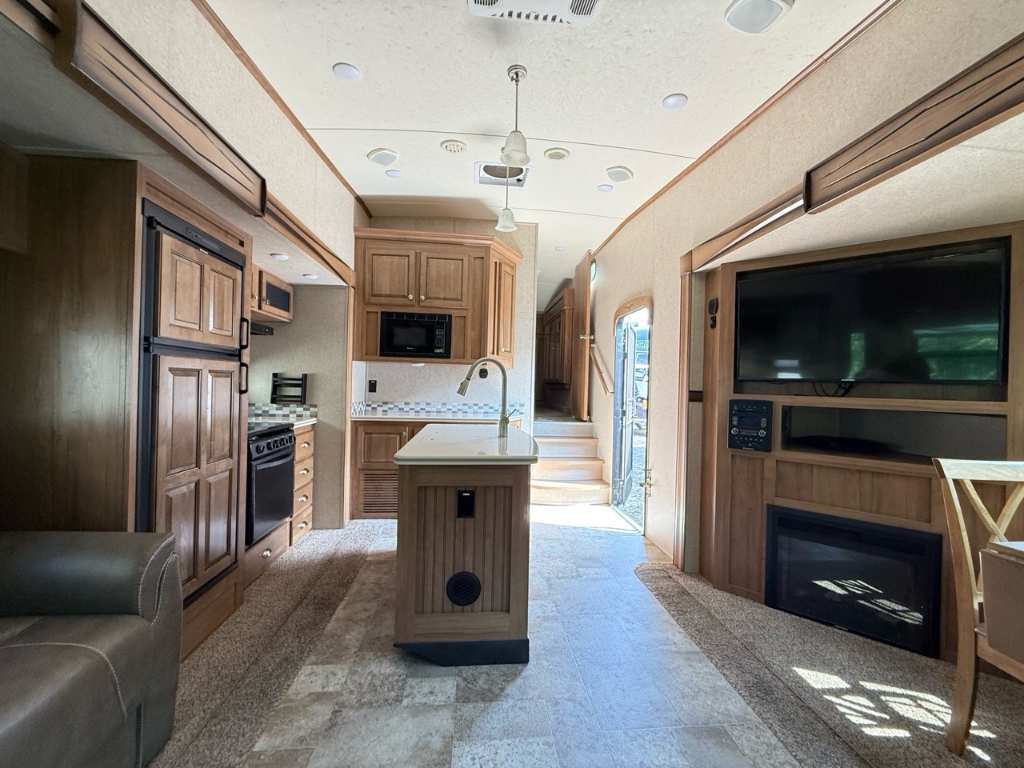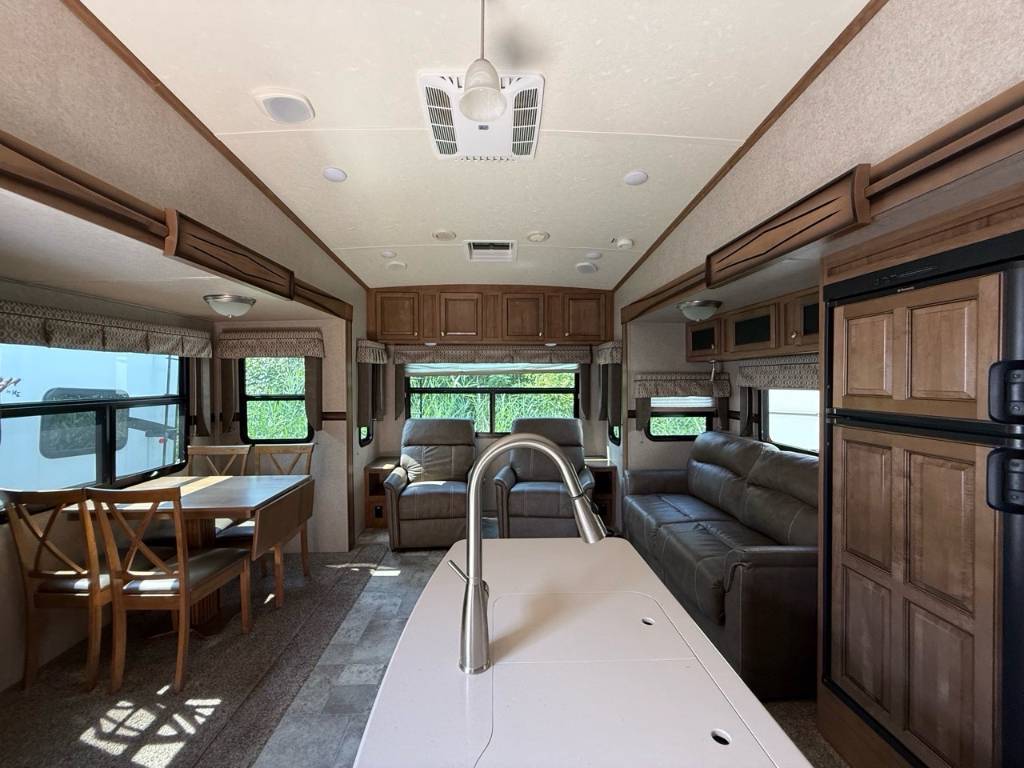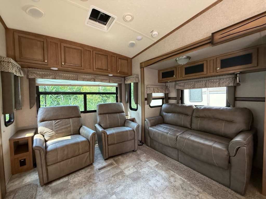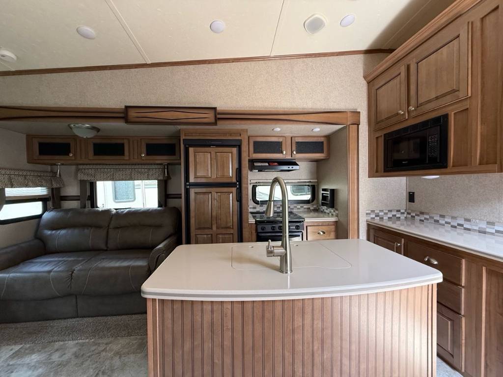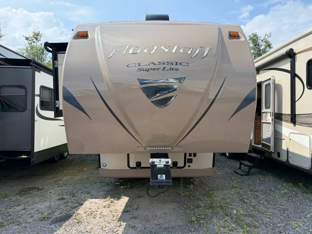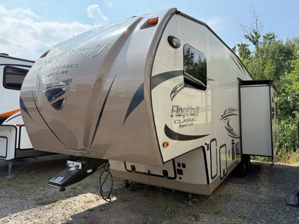 Forest River Flagstaff 8528IKWS 2017 Fifth Wheel – Forest River 2017 Flagstaff 8528IKWS - La Forest River Flagstaff Classic Super Lite 8528IKWS 2017 est une roulotte à sellette conçue pour les campeurs qui veulent du confort, de l’espace et une vraie sensation de “chez-soi” — que ce soit pour des escapades de fin de semaine ou des séjours prolongés. Dimensions & Capacités : • Longueur totale : 31.92 pieds • Poids à sec : 8 866 lbs • Réservoir d’eau douce : 45 gal • Réservoirs d’eaux usées : 135 gal • Couchages : Jusqu’à 4 personnes 5 caractéristiques principales : • Couchage jusqu’à 4 personnes - Elle est aménagée pour accueillir jusqu’à 4 occupants, avec un lit principal de taille Queen à l’avant et un canapé-lit dans le salon. • Configuration à 3 extensions (slide-outs) – Cet unité possède trois extensions électriques, offrant ainsi un vaste salon avec un coin détente, une dinette indépendante et une cuisine centrale autour d’un îlot – pour un espace de vie très confortable • Bonne capacité de ressources – Elle embarque 45 gal d’eau douce, 90 gal d’eaux grises et 45 gal d’eaux noires, ainsi que deux bonbonnes de propane (60 lb) – idéal pour rester autonome sur plusieurs jours. • Confort thermique assuré – Un climatiseur et un système de chauffage automatique permettent de maintenir une température agréable en toutes saisons • Robuste et bien équipée à l’extérieur – Facile à stabiliser avec ses vérins automatiques, elle est aussi équipée de grands auvents électriques qui créent un bel espace ombragé pour profiter de l’extérieur. La Flagstaff 8528IKWS combine espace, autonomie et confort dans une roulotte facile à vivre. Que ce soit pour voyager en couple ou recevoir à deux, elle rend le camping encore plus agréable. *** Prendre note que les photos et les options décrites peuvent différées *** Toute l'équipe de Centre du VR est fière de vous présenter le plus vaste inventaire de véhicules récréatifs neufs et d'occasions à vendre au Québec. Vous y trouverez notamment les marques Columbus, Rockwood, Kodiak, Coleman, Cruiser RV, Flagstaff, E-Pro, Springdale, Sunset Trail, Cougar, Chaparral, Bontrager Outdoors, motorisés Axis,Hurricane, Outlaw, Coachmen Cross Trail, Prism, Echelon,Fleetwood, Four winds, Beyon, Nova, Patriot et Embassy Dolphin. Remorques N&N, Apogée et Armorteck sont aussi disponibles. En inventaire pour vous, la série de génératrices Ducar. Vous avez un coup de coeur ? Envoyez-nous une demande d'information,financement sur place. N'oubliez pas également que rien ne vaut une visite du modèle qui vous intéresse pour vous aider à prendre une décision éclairée. Passez donc nous voir afin de jeter un coup d'oeil plus détaillé à nos caravanes et caravanes à sellettes neuves.