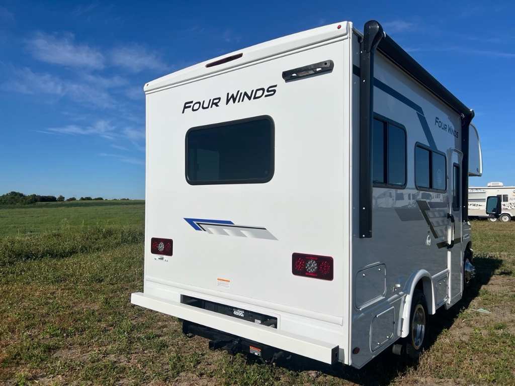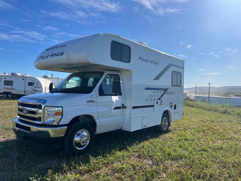 FOUR-WINDS 19Z 2026 Châssis Ford Série E - V8 de 7,3 L. 325 ch, couple de 450 lb-pi avec TPM - Empattement de 138 po, roues arrière jumelées, réservoir de carburant de 40 gallons Châssis Ford Série E - V8 de 7,3 L. 325 ch, couple de 450 lb-pi avec TPM - Empattement de 138 po, roues arrière jumelées, réservoir de carburant de 40 gallons. Générateur à gaz/GPL 50 State de 4,0 kW Compris Plus d'informations sur le générateur gaz/GPL 50 State de 4,0 kW Climatisation Climatiseur de toit avant de 13 500 BTU Climatiseur de toit avant de 13 500 BTU. Capacité de couchage : 4 Poids total admissible : 8 755 livres CCC : 2 745 livres Longueur extérieure : 20 pieds 5 pouces Hauteur extérieure 10 pieds 8 pouces Largeur extérieure : 7 pieds 10 pouces Frais/Gris/Noir : 20/16/17 gallons Propane : 40 livres Auvent : 11 pieds. Centre du VR : Votre expert en véhicules récréatifs au Québec Découvrez le plus vaste inventaire de VR neufs et d'occasion au meilleur prix. Que vous cherchiez une roulotte, une caravane à sellette (fifth wheel), une caravane-portée, un motorisé ou une remorque, notre équipe vous propose les plus grandes marques : Roulottes et Fifth Wheels : Rockwood, Flagstaff, Cougar, Springdale, Sunset Trail, Chaparral, Columbus, Impression, Kodiak, Coleman, E-Pro, Cruiser RV. Motorisés (Classe A, B, C) : Axis, Hurricane, Fleetwood, Four Winds, Coachmen Cross Trail, Prism, Echelon, Outlaw, Beyond, Nova. Remorques et Équipements : NN, Apogée, Armorteck et génératrices Ducar ou Cummins. Bien plus que de la vente : Un service complet Département de pièces et boutique : Un inventaire massif de pièces de remplacement et d'accessoires de camping pour améliorer votre confort. Service et réparation : Un centre de service spécialisé pour l'entretien et la réparation de vos unités, assuré par des techniciens experts. Financement : Profitez de nos solutions de financement avantageuses directement sur place. Un modèle vous intéresse ou vous avez besoin d'un entretien ? Contactez-nous pour une demande d'information ou passez nous voir en succursale pour une visite ! Note : Les photos et options peuvent différer de la réalité.