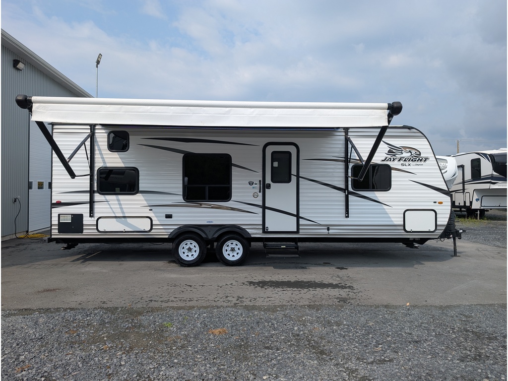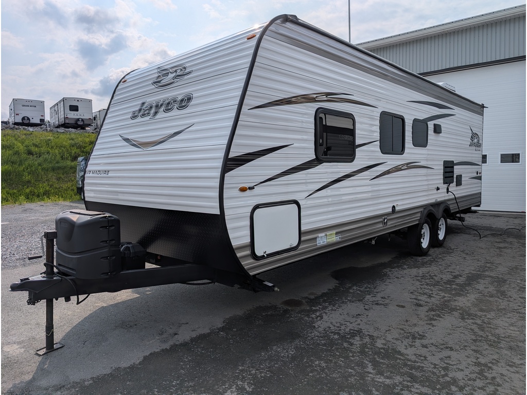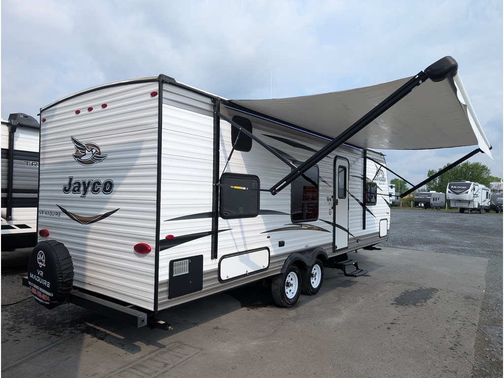 JAYFLIGHT 264BH 2018, IDÉALE POUR UNE FAMILLE! POIDS DE 4702 LBS, ROULOTTE POUVANT ACCUEILLIR JUSQU'À 8-9 PERSONNES POUR COUCHER, PNEU DE SECOURS, 26.4 PIEDS DE PLAN DE PLANCHER, LONGUEUR HORS TOUT DE 29.3, GRAND LIT DE 80X60, DINETTE LIT DE 72X38, DIVAN LIT DE 68X42, 2 BUNK BED SUPERPOSÉS DOUBLES DE 76X49, GRANDE AUVENT ÉLECTRIQUE, ESPACES DE RANGEMENT RENDANT L'HABITACLE TRÈS FONCTIONNEL TOUT EN GARDANT LES COMMODITÉS SUIVANTES; GRAND FRIGO AVEC CONGÉLATEUR FONCTIONNANT AU PROPANE, MICRO-ONDES, BRÛLEURS AU PROPANE À 3 RONDS, AIR CLIMATISÉ, CHAUFFE-EAU, CHAUFFAGE ET ENCORE PLUS! TRÈS BELLE ROULOTTE AVEC BEAUCOUP DE RANGEMENT! COUP DE COEUR ASSURÉ! VOUS CHERCHEZ UNE BELLE ROULOTTE DE QUALITÉ AU MEILLEUR PRIX ALORS, NOUS AVONS CE QU'IL VOUS FAUT. CELLE-CI EST LA PLUS BELLE DU MARCHÉ. ROULOTTE VENDU INSPECTÉE ET GARANTIE. PASSEZ NOUS VOIR AU 174 ROUTE DU PRÉSIDENT KENNEDY, BEAUCEVILLE, G5X 1P4, À SEULEMENT 40 MINUTES DES PONTS DE QUÉBEC. LIVRAISON DISPONIBLE PARTOUT AU QUÉBEC! PROFITEZ DE NOTRE FINANCEMENT FACILE ET RAPIDE. POUR PLUS D'INFOS, SANS FRAIS 1-888-799-0874, BUREAU 418-774-5066, CELL OU MESSAGE TEXTE KEVIN 418-386-0025 AU PLAISIR DE VOUS SERVIR ET À BIENTÔT! TOUJOURS LES MEILLEURS PRIX DU MARCHÉ WWW.AUTOMAGUIRE.COM *** NOUVEAUTÉS CHAQUE SEMAINE ***