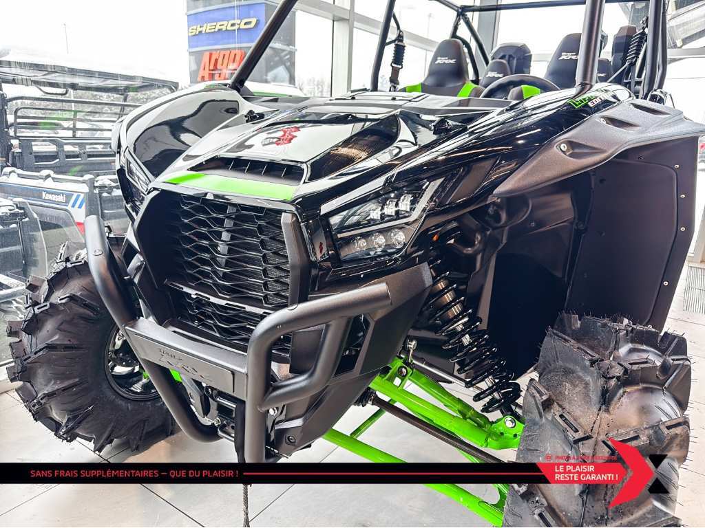 TERYX KRX4 1000 Lifted Edition Partagez l’aventure avec plus d’amis et de membres de votre famille avec de l’espace pour quatre passagers. Avec un cadre allongé, recevez des passagers additionnels sans compromis. La technologie de suspension électronique de pointe agencée aux roues et pneus robustes offre l’expérience de conduite ultime. Le véhicule côte à côte Teryx KRX4 1000 élève et renforce la réputation des véhicules côte à côte sport Kawasaki. La marque japonaise Kawasaki, largement connue pour ses motos et motomarines à performance inégalée, offre aussi des VTT et côtes-à-côtes tout aussi intéressants. motos et vtts non disponible a la succursale de St-Eustache GARANTIE PROLONGÉE jusqu'à 4 ans disponible et plan d’entretien Financement approuvé — 1re, 2e et 3e chance au crédit! Testez-nous et trouvez la meilleure solution, au meilleur taux. Votre incontournable du financement ! PLEASE DON'T HESITATE TO CONTACT US, WE SPEAK ENGLISH AS WELL ! Nous prenons tout véhicule d’échange Prix Garanti. AUCUN FRAIS CACHÉS, prix affiché valide sur financement ou paiement comptant. *(taxe en sus) We speak English contact us. LIVRAISON PARTOUT AU Québec Mentions légales au financement, consultez notre site Internet. GARANTIE PROLONGÉE jusqu'à 4 ans disponible et plan d’entretien disponible uniquement chez groupe motoplex
