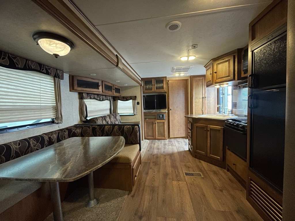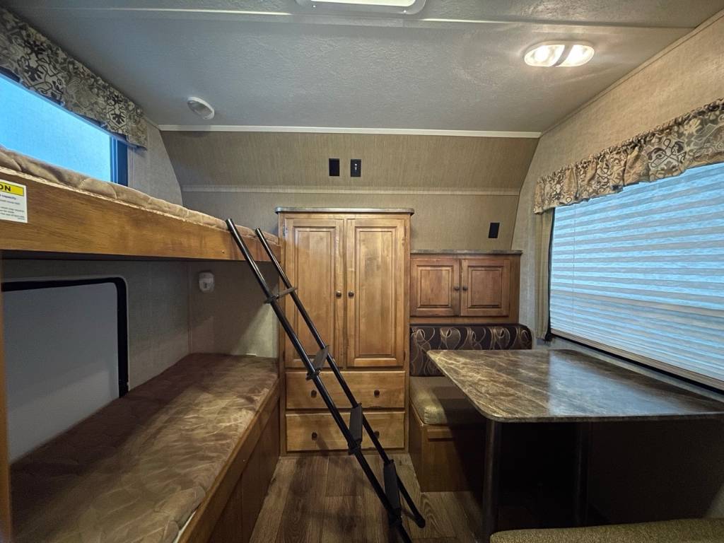 KEYSTONE RV 320BHS 2014 ongueur 36,17 pi (434 po) Largeur 8 pi (96 po) Hauteur 11,25 pi (135 po) Hauteur intérieure 6,67 pi (80 po) Poids Poids sec 8 212 livres Capacité de charge utile 2 863 livres PNBV 11 075 livres Poids de l'attelage 865 livres Réservoirs de rétention Nombre de réservoirs d'eau douce 1 Capacité totale du réservoir d'eau douce 45,0 gal. Nombre de réservoirs de rétention d'eaux grises 1 Capacité totale du réservoir d'eaux grises 64,0 gal. Nombre de réservoirs de rétention des eaux noires 1 Capacité totale du réservoir d'eaux noires 32,0 gal. Réservoir(s) de propane Nombre de réservoirs de propane 2 Capacité totale du réservoir de propane 14,2 gal. Capacité totale du réservoir de propane 60 livres dinette en u .Four 3 ronds Mode d'alimentation du réfrigérateur Électrique / Propane Peux coucher 9 personnes Centre du VR : Votre expert en véhicules récréatifs au Québec Découvrez le plus vaste inventaire de VR neufs et d'occasion au meilleur prix. Que vous cherchiez une roulotte, une caravane à sellette (fifth wheel), une caravane-portée, un motorisé ou une remorque, notre équipe vous propose les plus grandes marques : Roulottes et Fifth Wheels : Rockwood, Flagstaff, Cougar, Springdale, Sunset Trail, Chaparral, Columbus, Impression, Kodiak, Coleman, E-Pro, Cruiser RV. Motorisés (Classe A, B, C) : Axis, Hurricane, Fleetwood, Four Winds, Coachmen Cross Trail, Prism, Echelon, Outlaw, Beyond, Nova. Remorques et Équipements : NN, Apogée, Armorteck et génératrices Ducar ou Cummins. Bien plus que de la vente : Un service complet Département de pièces et boutique : Un inventaire massif de pièces de remplacement et d'accessoires de camping pour améliorer votre confort. Service et réparation : Un centre de service spécialisé pour l'entretien et la réparation de vos unités, assuré par des techniciens experts. Financement : Profitez de nos solutions de financement avantageuses directement sur place. Un modèle vous intéresse ou vous avez besoin d'un entretien ? Contactez-nous pour une demande d'information ou passez nous voir en succursale pour une visite ! Note : Les photos et options peuvent différer de la réalité.