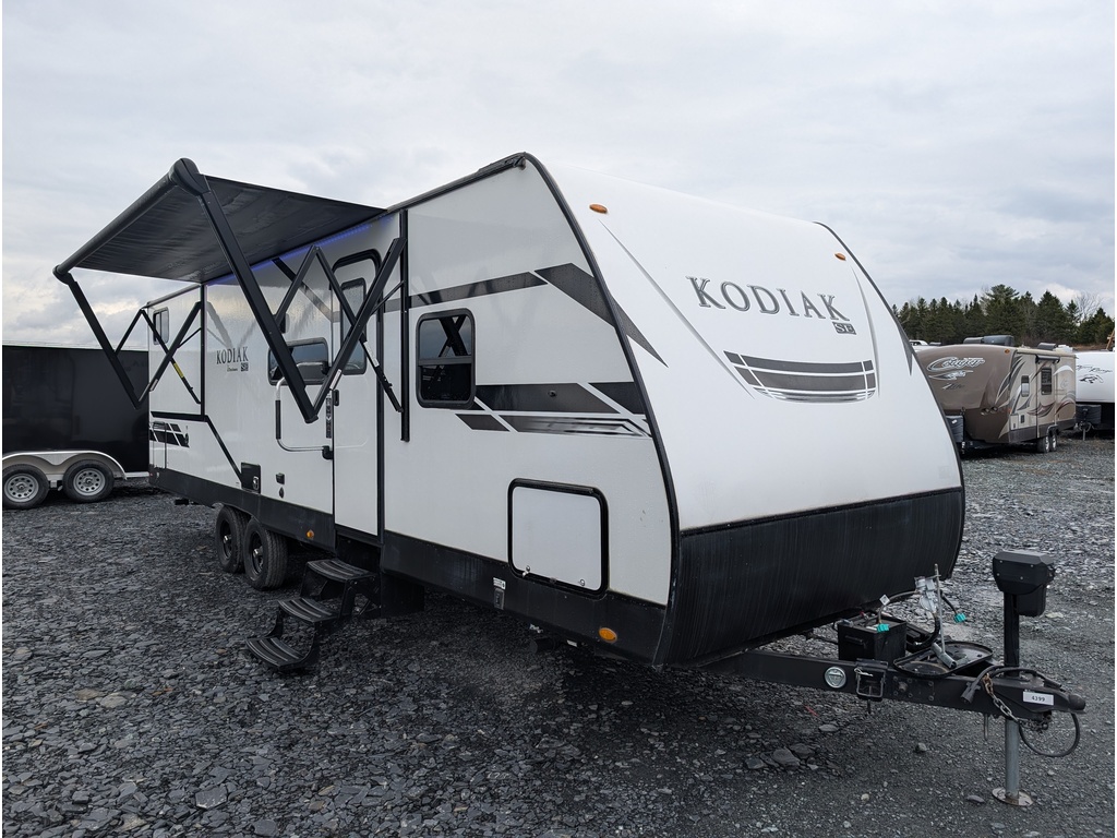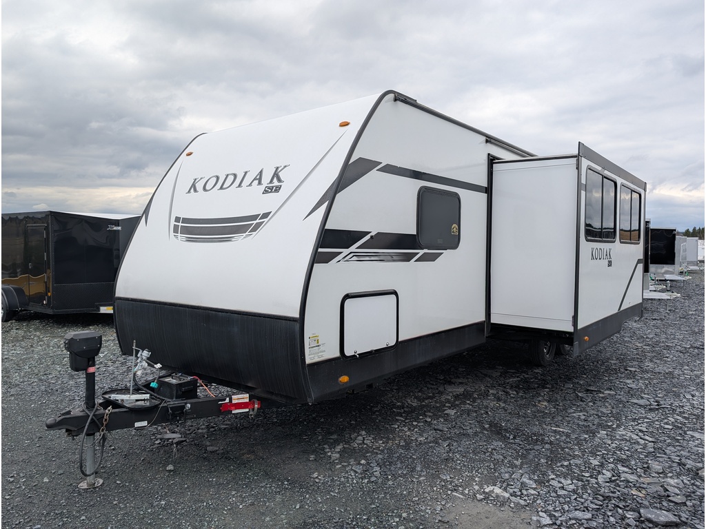 KODIAK 28SBH 2021, MAGNIFIQUE ROULOTTE IDÉALE POUR FAMILLE! POIDS DE 5335 LBS, 1 EXTENSION, 1 GRANDE AUVENT ÉLECTRIQUE, PNEU DE SECOURS, FRIGO EXTÉRIEUR, ROULOTTE POUVANT ACCUEILLIR JUSQU'À 9-10 PERSONNES POUR COUCHER, 28 PIEDS DE PLAN DE PLANCHER, GRAND LIT DE 80X60, CHAMBRE AVEC 4 BUNK(72X28, 72X30, 72X28, 72X40), DINETTE LIT DE 72X39 1/2, DIVAN LIT DE 58X42, FOYER, ESPACES DE RANGEMENT RENDANT L'HABITACLE TRÈS FONCTIONNEL TOUT EN GARDANT LES COMMODITÉS SUIVANTES; GRAND FRIGO AVEC CONGÉLATEUR FONCTIONNANT AU PROPANE, MICRO-ONDES, BRÛLEURS AU PROPANE À 3 RONDS, AIR CLIMATISÉ, CHAUFFE-EAU, CHAUFFAGE, RADIO ET ENCORE PLUS! TRÈS BELLE ROULOTTE AVEC BEAUCOUP DE RANGEMENT! COUP DE COEUR ASSURÉ! VOUS CHERCHEZ UNE BELLE ROULOTTE DE QUALITÉ AU MEILLEUR PRIX ALORS, NOUS AVONS CE QU'IL VOUS FAUT. CELLE-CI EST LA PLUS BELLE DU MARCHÉ. ROULOTTE VENDU INSPECTÉE ET GARANTIE. PASSEZ NOUS VOIR AU 174 ROUTE DU PRÉSIDENT KENNEDY, BEAUCEVILLE, G5X 1P4, À SEULEMENT 40 MINUTES DES PONTS DE QUÉBEC. LIVRAISON DISPONIBLE PARTOUT AU QUÉBEC! PROFITEZ DE NOTRE FINANCEMENT FACILE ET RAPIDE. POUR PLUS D'INFOS, SANS FRAIS 1-888-799-0874, BUREAU 418-774-5066, CELL OU MESSAGE TEXTE KEVIN 418-386-0025 AU PLAISIR DE VOUS SERVIR ET À BIENTÔT! TOUJOURS LES MEILLEURS PRIX DU MARCHÉ WWW.AUTOMAGUIRE.COM *** NOUVEAUTÉS CHAQUE SEMAINE ***