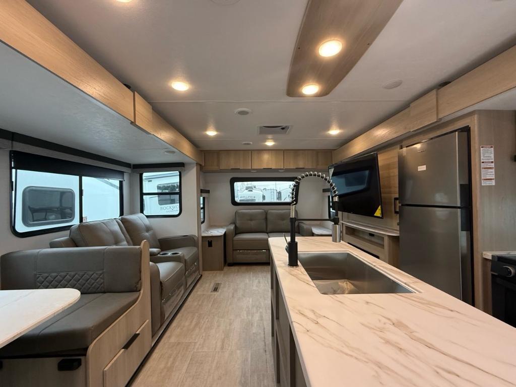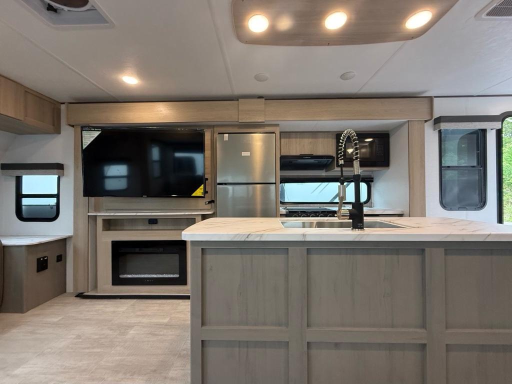 Kodiak 3371FLSL 2025Roulotte – Kodiak 3371FLSL 2025 - La Kodiak 3371FLSL est une roulotte haut de gamme pensée pour ceux qui veulent le confort d’un vrai chez-soi, partout où ils vont. Dimensions & Capacités : • Longueur totale : 37.25 pieds • Poids à sec : 7 564 lbs • Réservoir d’eau douce : 50 gal • Réservoirs d’eaux usées : 106 gal • Couchages : Jusqu’à 6 personnes 5 caractéristiques principales : • Un grand salon lumineux à l’avant - Dès qu’on entre, on découvre un vaste salon avec plusieurs places assises, de grandes fenêtres panoramiques et un foyer. Parfait pour relaxer ou recevoir des amis, comme dans un vrai salon à la maison. • Cuisine complète avec îlot et cuisine extérieure – La cuisine intérieure est pratique et moderne, avec un îlot central et beaucoup d’espace de travail. À l’extérieur, une deuxième cuisine vous permet de préparer vos repas tout en profitant du plein air. • Facile à utiliser, prête à partir – Avec son grand auvent, ses marches solides, ses systèmes électriques et ses nombreux rangements, cette roulotte est prête à vous suivre partout – sans tracas. • Chambre arrière avec lit king – À l’autre bout de la roulotte, une vraie chambre fermée vous attend, avec un lit king spacieux et rangement. • Son foyer électrique dans le salon crée une ambiance chaleureuse pour les soirées fraîches ou les journées de détente à l’intérieur. Avec ses espaces ouverts, ses équipements modernes et son ambiance chaleureuse, elle transforme chaque séjour en vacances relaxantes. *** Prendre note que les photos et les options décrites peuvent différées *** Toute l'équipe de Centre du VR est fière de vous présenter le plus vaste inventaire de véhicules récréatifs neufs et d'occasions à vendre au Québec. Vous y trouverez notamment les marques Columbus, Rockwood, Impression, Kodiak, Coleman, Cruiser RV, Flagstaff, E-Pro, Springdale, Sunset Trail, Cougar, Chaparral, Bontrager Outdoors, motorisés Axis, Hurricane, Outlaw, Coachmen Cross Trail, Prism, Echelon, Fleetwood, Four winds, Compass, Beyond, Nova et Pixel. Remorques N&N, Apogée et Armorteck sont aussi disponibles. En inventaire pour vous, la série de génératrices Ducar. Vous avez un coup de coeur ? Envoyez-nous une demande d'information. Financement sur place. N'oubliez pas également que rien ne vaut une visite du modèle qui vous intéresse pour vous aider à prendre une décision éclairée. Passez donc nous voir afin de jeter un coup d'oeil plus détaillé à nos caravanes et caravanes à sellettes neuves.