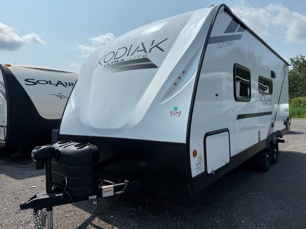 Kodiak 201QB 2026Roulotte – Kodiak 201QB 2026 – Partez à l’aventure en tout confort avec la Kodiak 201QB – une roulotte compacte, moderne et idéale pour voyager à deux. Dimensions & Capacités : • Longueur totale : 24.08 pieds • Poids à sec : 4 193 lbs • Réservoir d’eau douce : 44 gal • Réservoirs d’eaux usées : 67 gal • Couchages : Jusqu’à 4 personnes 5 caractéristiques principales : • Couchage confortable pour couple - Un grand lit queen est installé à l’avant de la roulotte, offrant un espace de sommeil spacieux pour deux • Salle de bain complète à l’arrière – Présence d’une salle de bain complète avec douche, lavabo et toilette, située à l’arrière de l’unité pour plus d’intimité et de confort • Cuisine équipée avec réfrigérateur – Cuisine fonctionnelle dotée d’un réfrigérateur, d’un évier, d’une cuisinette et d’un coin repas type dinette. • Intérieur moderne, clair et bien aménagé • Fabrication solide pour durer dans le temps Prête à partir, facile à vivre et bien équipée, la Kodiak 201QB a tout pour rendre vos escapades simples, agréables et mémorables. *** Prendre note que les photos et les options décrites peuvent différées *** Toute l'équipe de Centre du VR est fière de vous présenter le plus vaste inventaire de véhicules récréatifs neufs et d'occasions à vendre au Québec. Vous y trouverez notamment les marques Columbus, Rockwood, Impression, Kodiak, Coleman, Cruiser RV, Flagstaff, E-Pro, Springdale, Sunset Trail, Cougar, Chaparral, Bontrager Outdoors, motorisés Axis, Hurricane, Outlaw, Coachmen Cross Trail, Prism, Echelon, Fleetwood, Four winds, Compass, Beyond, Nova et Pixel. Remorques N&N, Apogée et Armorteck sont aussi disponibles. En inventaire pour vous, la série de génératrices Ducar. Vous avez un coup de coeur ? Envoyez-nous une demande d'information. Financement sur place. N'oubliez pas également que rien ne vaut une visite du modèle qui vous intéresse pour vous aider à prendre une décision éclairée. Passez donc nous voir afin de jeter un coup d'oeil plus détaillé à nos caravanes et caravanes à sellettes neuves.