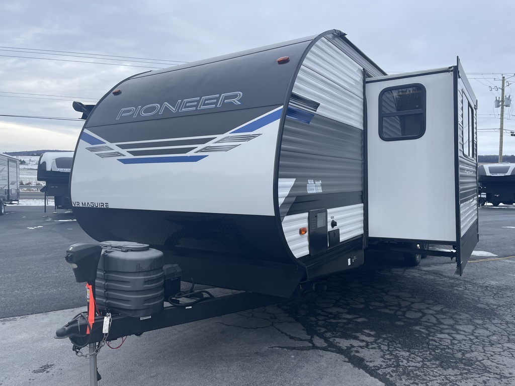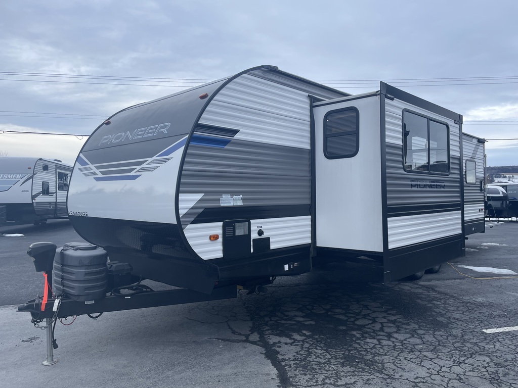 PIONEER RG28 2023 EST UNE ROULOTTE DE VOYAGE CARGO D'UNE LONGUEUR HORS TOUT DE 34 PIEDS, UN POIDS DE 6600 LBS, 1 SLIDE OUT, GRANDEUR DU GARAGE DE 92 POUCES DE LARGE ET DE 9 PIEDS DE LONG + 2 PIEDS DE PENTE POUR UN TOTALE DE 11 PIEDS DE LONGUEUR, PEUT ACCUEILLIR JUSQU'À 6 PERSONNES POUR COUCHER, GRAND LIT DE 80'' X 60'', DINETTE BANQUETTE EN U DE 90'' X 42'', LIT ESPACE CARGO DE 90'' X 70'', RÉFRIGÉRATEUR AVEC CONGÉLATEUR FONCTIONNANT AU PROPANE/ÉLECTRIQUE, FOUR AVEC CUISINIÈRE À 3 BRÛLEUR, MICRO ONDE, AIR CLIMATISÉ ET PLUS ENCORE! TRÈS BELLE ROULOTTE AVEC BEAUCOUP DE RANGEMENT! ROULOTTE VENDU INSPECTÉE ET GARANTIE. À SEULEMENT 40 MINUTES DES PONTS DE QUÉBEC. LIVRAISON DISPONIBLE PARTOUT AU QUÉBEC! PROFITEZ DE NOTRE FINANCEMENT FACILE ET RAPIDE. POUR PLUS D'INFOS, WWW.VRMAGUIRE.COM, SANS FRAIS 1-888-799-0874, BUREAU 418-774-5066, CELL OU MESSAGE TEXTE KEVIN 418-386-0025, AU PLAISIR DE VOUS SERVIR ET À BIENTÔT! **TOUJOURS LES MEILLEURS PRIX DU MARCHÉ**