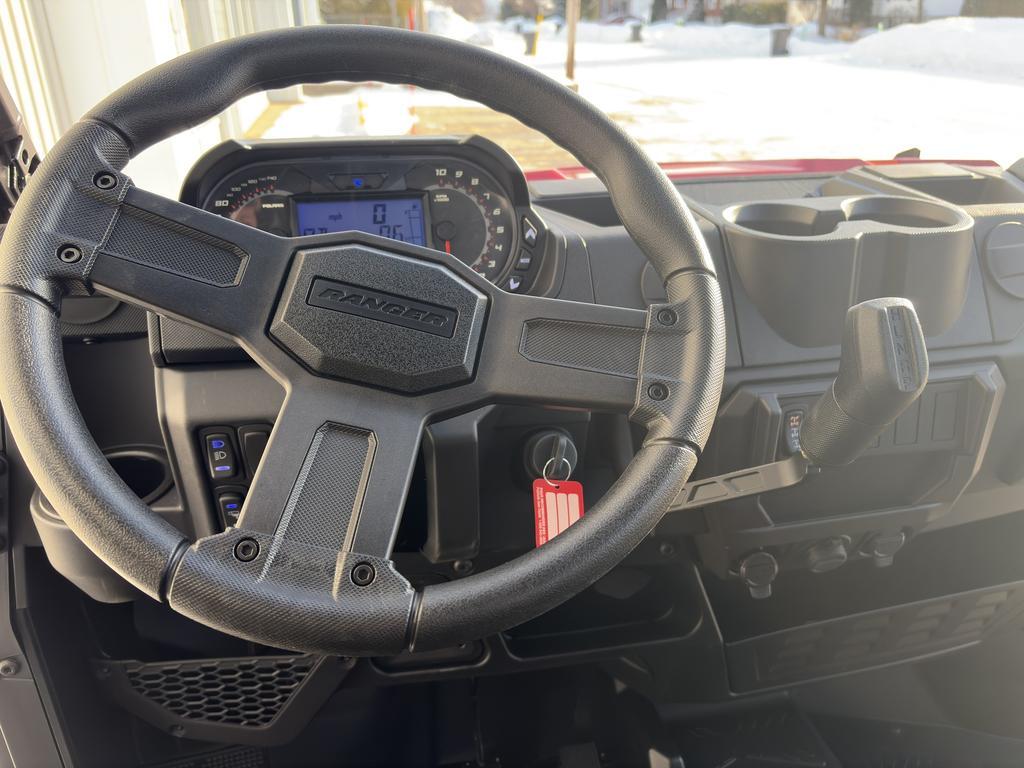Polaris RANGER Crew XP 1000 Premium 2026 chez Moto Sport 100 Limites à Drummondville Découvrez le Polaris RANGER Crew XP 1000 Premium 2026 chez Moto Sport 100 Limites à Drummondville, le côte-à-côte utilitaire par excellence pour ceux qui recherchent puissance, polyvalence et capacité de transport supérieure. Conçu pour le travail, la chasse, la terre ou les longues journées en forêt, le RANGER Crew XP 1000 combine robustesse, espace et fiabilité dans un modèle idéal pour les utilisateurs intensifs du Centre-du-Québec. Localisé à Drummondville, près de Victoriaville, Trois-Rivières, Sherbrooke, Sorel et Granby, Moto Sport 100 Limites est votre concessionnaire Polaris de référence. Caractéristiques principales du Polaris RANGER Crew XP 1000 Premium : • Moteur ProStar 82 HP offrant une puissance constante et fiable pour le travail et les terrains exigeants. • Capacité de boîte de 1 000 lb — parfaite pour les charges lourdes, équipements de ferme, bois ou matériel de chasse. • Capacité de remorquage de 2 500 lb, idéale pour tirer remorques, charges utilitaires ou équipements agricoles. • Pneus Pro Armor X-Terrain 29 pouces, 8 plis, assurant traction et durabilité sur terrains accidentés. • Garde au sol de 14 pouces pour franchir obstacles, roches et chemins techniques sans compromis. • Contrôle d'accélération à 3 modes (Performance / Standard / Work) pour adapter la conduite à toutes les situations. • Phares DEL pour une visibilité supérieure tôt le matin, tard le soir ou en forêt dense. • Toit installé en usine, offrant une protection supplémentaire contre les intempéries. • Treuil 4 500 lb avec corde synthétique, Auto-Stop et télécommande sans fil — essentiel pour extraction, travail et sécurité. Le RANGER Crew XP 1000 Premium 2026 est reconnu pour son confort exceptionnel à 6 places, sa douceur de conduite et sa capacité à affronter les tâches professionnelles les plus exigeantes tout en offrant une expérience hors-route fluide et stable. Pourquoi Moto Sport 100 Limites à Drummondville ? • Concessionnaire Polaris certifié au Centre-du-Québec • Expertise en côte-à-côtes utilitaires, véhicules de travail et modèles récréatifs • Service complet : entretien, réparation, pièces et accessoires Polaris d'origine • Conseils personnalisés selon vos besoins : travail agricole, forêt, chasse, loisirs • Accès rapide aux modèles populaires comme le RANGER Crew XP 1000 Premium Découvrez le Polaris RANGER Crew XP 1000 Premium 2026 dès maintenant chez Moto Sport 100 Limites à Drummondville. Localisé au Centre-du-Québec, à proximité de Victoriaville, Trois-Rivières, Sherbrooke, Sorel et Granby. Appelez-nous au (819) 445-6686 !