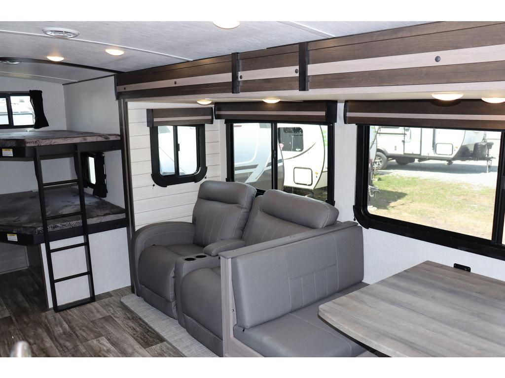 SUNSET TRAIL 272BH 2022 [%texts.9%] Sunset Trail 272BH 2022 – Confort et espace pour toute la famille Découvrez la Sunset Trail 272BH 2022, une roulotte familiale spacieuse et élégante conçue pour des escapades inoubliables. Avec ses 31,42 pieds de longueur et un poids à sec de 5 658 livres, cette unité allie maniabilité et confort haut de gamme. Pensée pour accueillir jusqu’à 8 personnes, elle offre des espaces de couchage bien répartis : • Deux lits superposés doubles parfaits pour les enfants (ou les amis), • Un lit queen dans une chambre fermée pour plus d’intimité, • Une banquette dinette convertible, • Et une causeuse de style cinéma maison, idéal pour relaxer après une journée d’aventures. ?? Cuisine entièrement équipée Vous y trouverez tout le nécessaire pour cuisiner comme à la maison : • Réfrigérateur spacieux, • Évier • Cuisinière avec four, • Four à micro-ondes, pour réchauffer ou préparer rapidement les repas. ?? Salle de bain complète Pratique et bien aménagée, elle comprend : • Une douche pleine grandeur, • Une toilette, • Un lavabo avec meuble-lavabo, • Une armoire pharmacie pour le rangement. ?? Réservoirs généreux • Eau douce : 45 gallons • Eaux grises : 60 gallons Que vous partiez pour un week-end ou plusieurs semaines, cette roulotte a été conçue pour offrir autonomie, confort et fonctionnalité, le tout dans un style contemporain et chaleureux. Centre du VR : Votre expert en véhicules récréatifs au Québec Découvrez le plus vaste inventaire de VR neufs et d'occasion au meilleur prix. Que vous cherchiez une roulotte, une caravane à sellette (fifth wheel), une caravane-portée, un motorisé ou une remorque, notre équipe vous propose les plus grandes marques : Roulottes et Fifth Wheels : Rockwood, Flagstaff, Cougar, Springdale, Sunset Trail, Chaparral, Columbus, Impression, Kodiak, Coleman, E-Pro, Cruiser RV. Motorisés (Classe A, B, C) : Axis, Hurricane, Fleetwood, Four Winds, Coachmen Cross Trail, Prism, Echelon, Outlaw, Beyond, Nova. Remorques et Équipements : NN, Apogée, Armorteck et génératrices Ducar ou Cummins. Bien plus que de la vente : Un service complet Département de pièces et boutique : Un inventaire massif de pièces de remplacement et d'accessoires de camping pour améliorer votre confort. Service et réparation : Un centre de service spécialisé pour l'entretien et la réparation de vos unités, assuré par des techniciens experts. Financement : Profitez de nos solutions de financement avantageuses directement sur place. Un modèle vous intéresse ou vous avez besoin d'un entretien ? Contactez-nous pour une demande d'information ou passez nous voir en succursale pour une visite ! Note : Les photos et options peuvent différer de la réalité.