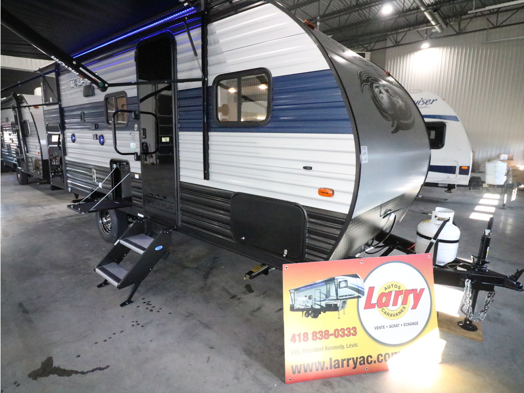 VENDU !!!! Wolf Pup 17JG 2022. Superbe roulotte familiale avec lit queen et lits superposés pour les enfants. Facile à remorquer avec un poids de seulement 3800 lbs. Elle possède une extension dans laquelle se retrouve une superbe banquette en ''U''. Cette roulotte est une édition limitée avec énormément d'équipements qui vous plairont tel que le grand réfrigérateur avec congélateur à part ; les roues en alliage ; climatisation sur le toit ; préparation pour panneau solaire ; petit réfrigérateur extérieur ; douchette extérieure ; chauffe eau à allumage électronique ; stéréo avec haut-parleurs intérieurs et extérieurs. Elle est très bien équipée pour profiter de l'extérieur avec son auvent électrique ainsi que les marches ultra-robustes. Beaucoup mieux équipée que Swift, Viking ou Clipper. Financement facile sur place. **Photos à titre indicatif**