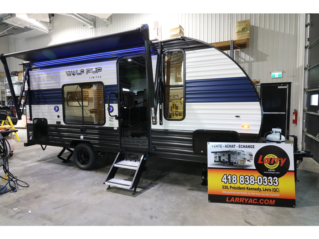 Wolf Pup 16FQ 2023. Petite roulotte idéale pour un couple . Elle est très légère seulement 3000lbs. Elle mesure 18' de plancher. C'est une roulotte spéciale édition très bien équipée. Elle est munie d'un lit murphy et d'un divan . La cuisine est munie d'un grand réfrigérateur avec congélateur à part, une cuisinière 2 ronds, ainsi qu'un évier rond en acier inoxydable avec un dessus pour garder la place du comptoir. Elle a un très grand comptoir parfait pour cuisiner. Vous retrouverez la banquette devant une très grande fenêtre ce qui donne une belle clarté. Vous serez enchanté par la grande salle de bain arrière avec un bain douche, un comptoir lavabo et beaucoup d'espace. Elle est très bien équipée pour profiter de l'extérieur avec son auvent électrique de 12', son petit réfrigérateur, ses haut-parleurs extérieurs . Elle est dotée de marches ultra-robustes pour une meilleure stabilité. Financement facile sur place. PRIX RÉGULIER: 35 995$...............................PRIX SPÉCIAL: 29 995$ = RABAIS 6000$!!!!!!! À VOUS POUR SEULEMENT: 71$/SEMAINE!! 0$ COMPTANT!! sur approbation du crédit seulement. LARRY AUTOS CARAVANES 530 ROUTE DU PRÉSIDENT-KENNEDY LÉVIS SORTIE 325 SUD 418-838-0333 photos à titre indicatif