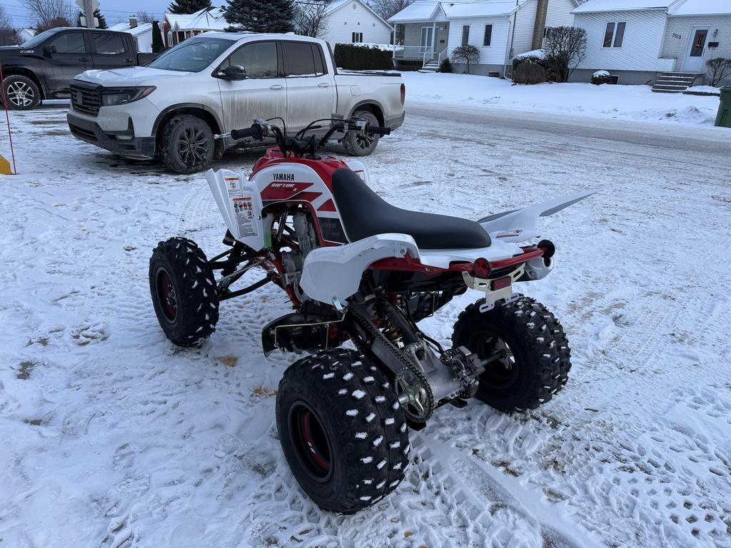 Trouvez votre Yamaha Raptor 700R SE 2026 chez Moto Sport 100 Limites à Drummondville   Vous cherchez un VTT Yamaha Raptor 700R SE 2026 performant, agile et conçu pour les amateurs de sensations fortes ? Découvrez ce modèle exceptionnel dès maintenant chez Moto Sport 100 Limites à Drummondville, votre concessionnaire de confiance pour VTT, motos, UTV et motoneiges dans la région du Centre-du-Québec.     Caractéristiques principales du Yamaha Raptor 700R SE 2026   - Moteur puissant : Monocylindre 686 cm³ à injection électronique pour des performances maximales sur tous les terrains.   - Transmission manuelle : 5 vitesses avec marche arrière pour une conduite précise et contrôlée.   - Suspension avant et arrière : Débattement long pour un confort optimal sur sentiers et terrains accidentés.   - Châssis robuste : Cadre hybride en acier et aluminium pour légèreté et durabilité.   - Équipements spéciaux : Accessoires GYTR® et édition spéciale 70e anniversaire pour un style unique et protection améliorée.     Pourquoi choisir Moto Sport 100 Limites à Drummondville ?   - Large inventaire de VTT Yamaha et autres marques populaires.   - Service après-vente et entretien complet sur place.   - Conseils personnalisés pour choisir le VTT adapté à vos besoins.   - Localisé au Centre-du-Québec, à proximité de Victoriaville, Trois-Rivières et Sherbrooke.     Découvrez le Yamaha Raptor 700R SE 2026 dès maintenant chez Moto Sport 100 Limites à Drummondville. Localisé au Centre-du-Québec, à proximité de Victoriaville, Trois-Rivières et Sherbrooke. Appelez-nous au (819) 445-6686 !